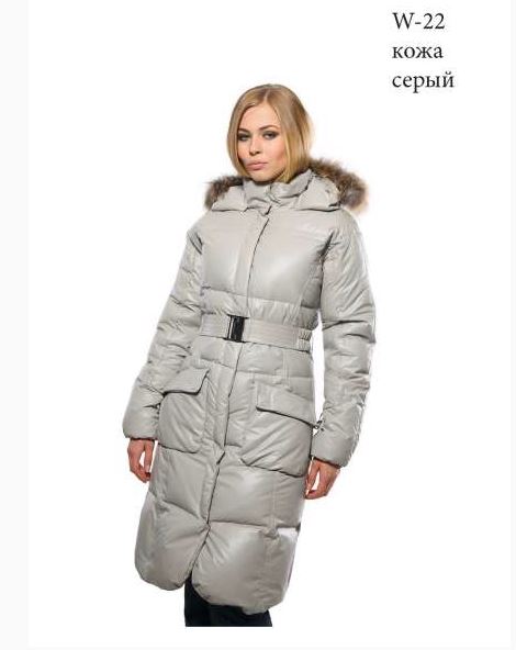 W-22c Пальто женское с меховой отделкой чернобурая лисица по капюшону Кожа Тайнин/70%-пух, 30%-перо