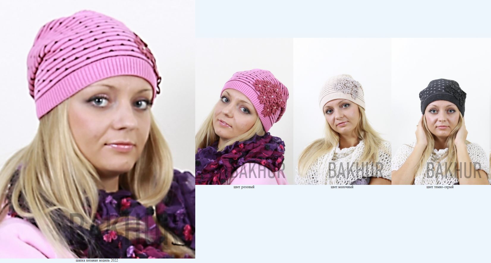 Шапка вязаная арт. 2022 универсальный 347р розовый, светло серый, т. серый