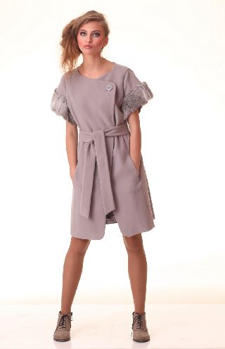 Изысканный и глубокий цвет искусно оттеняется плавными линиями кроя и элементами из меха.