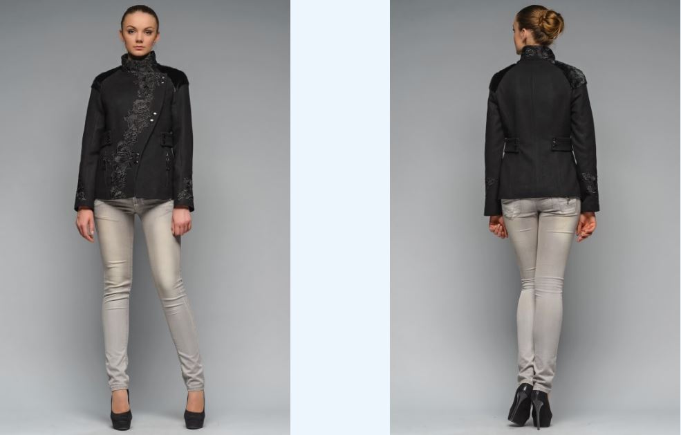 Красивейшее короткое приталенное пальто. Украшено итальянским кружевом не только спереди, но с внутренней части борта. Если вы захотите немного сменить образ, вам нужно будет немного расстегнуть скошенную змейку и более романтичный образ готов. Рукав реглан — украшен натуральной нерпой. Воротник – стойка с итальянским кружевом создает романтичное настроение. На талии – полупояс на кнопках, создаст более утонченный образ.