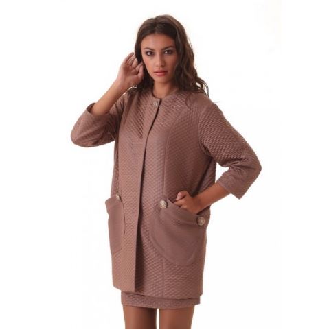 Женский плащ-жакет Эмилия свободного силуэта в пастельном бежевом цвете обязательно должен быть в гардеробе современной модницы.