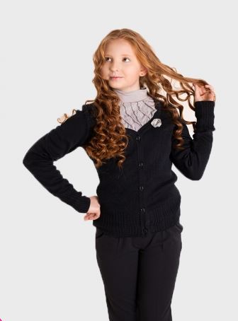 Dd10206_3-Жакет на пуговицах, ажурные манжеты-вязаный трикотаж-(80LVL)-черный-42(164) 1 785,00 руб.