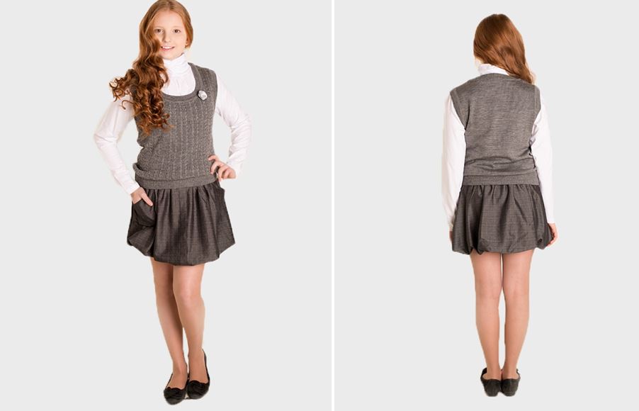 Dd10106_1-Жилет с ажурной передней полочкой-вязаный трикотаж-(80LVL)-серый-34(134) 2 539,00 руб.