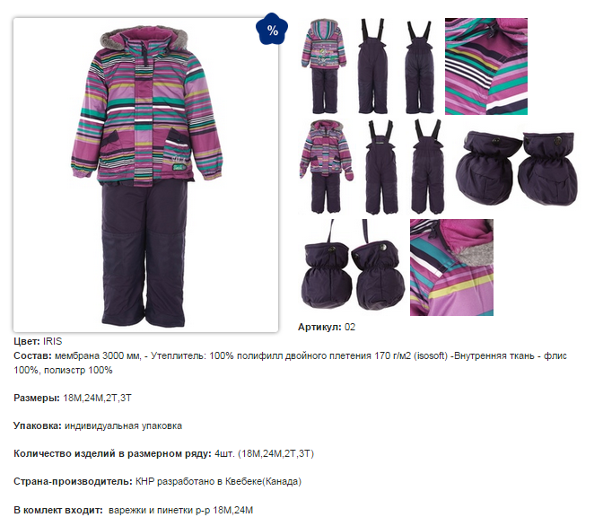 - Утеплитель: 100% полифилл двойного плетения 170 г/м2 (isosoft)