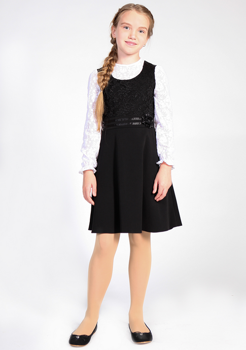 Dd30219_3-Сарафан с гипюровой кокеткой-костюмная ткань-(80LVL)-черный-36(140_146) 1 790,00 руб.