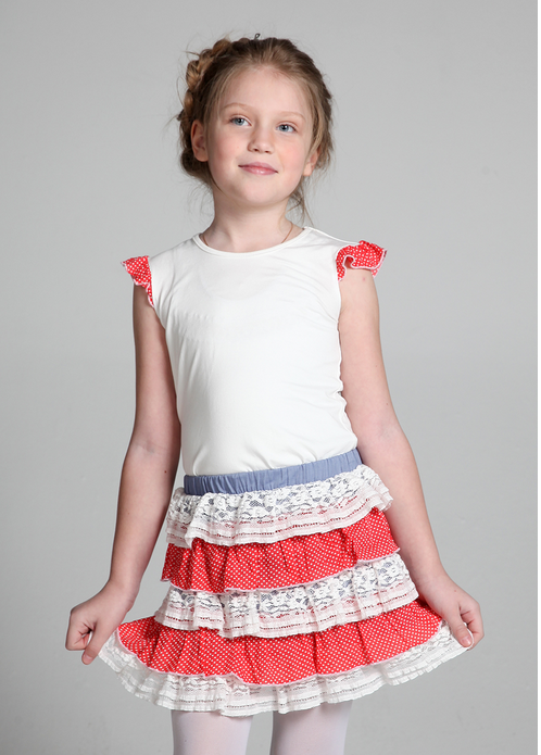 Dd30304-Юбка _"Рюши из гороха и гипюра"-Хлопок 100%-(80LVL)-белый с серым-34(140) 6 499,00 руб.