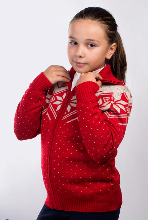 Dy102052-Кофта на молнии с орнаментом-вязаный трикотаж-(80LVL)-красный-34(140) >10 685,00 руб.
