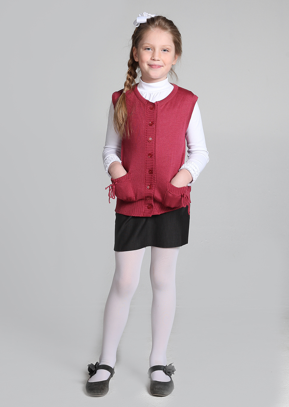 Dd10100s-Жилет на пуговицах-вязаный трикотаж-(80LVL)-ягодный-34(140) 1 350.00 руб. Шерсть 50%, нитрон 50%