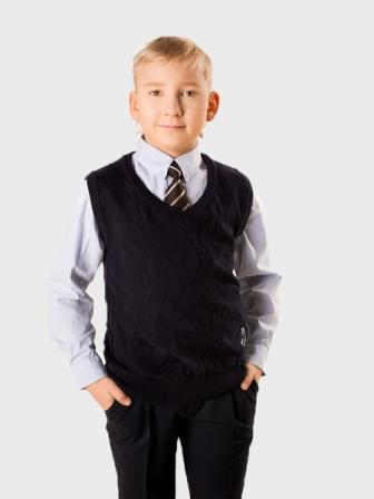 Dm104051_2w-Жилет "ромбы" гладкая вязка-вязаный трикотаж-(80LVL)-темно_синий-30(122_128) 2 540.00 руб. Шерсть 50%, акрил 50%