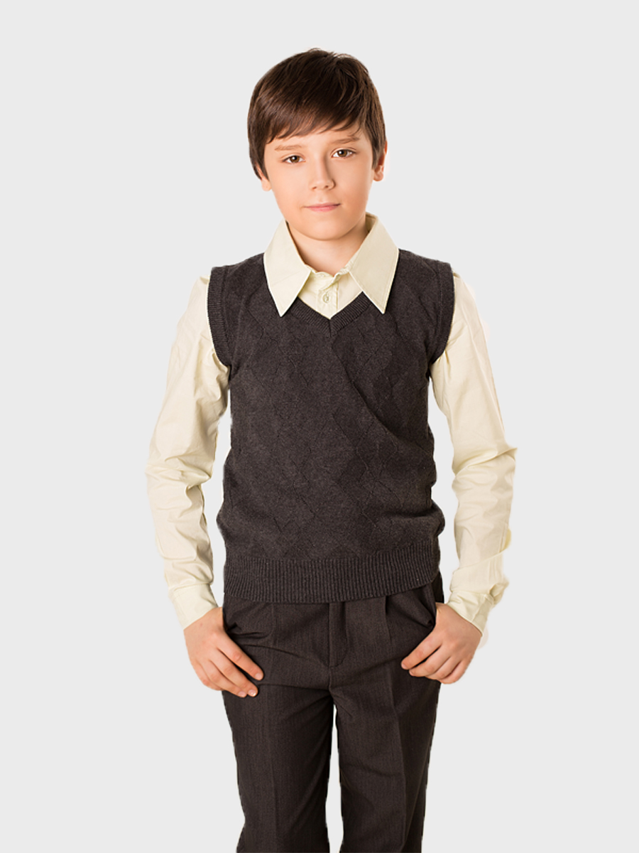 Dm104050_1L-Жилет "ромбы" гладкая вязка-вязаный трикотаж-(80LVL)-серый-30(122_128) 3 530.00 руб. Хлопок 50%, П/Э 50%