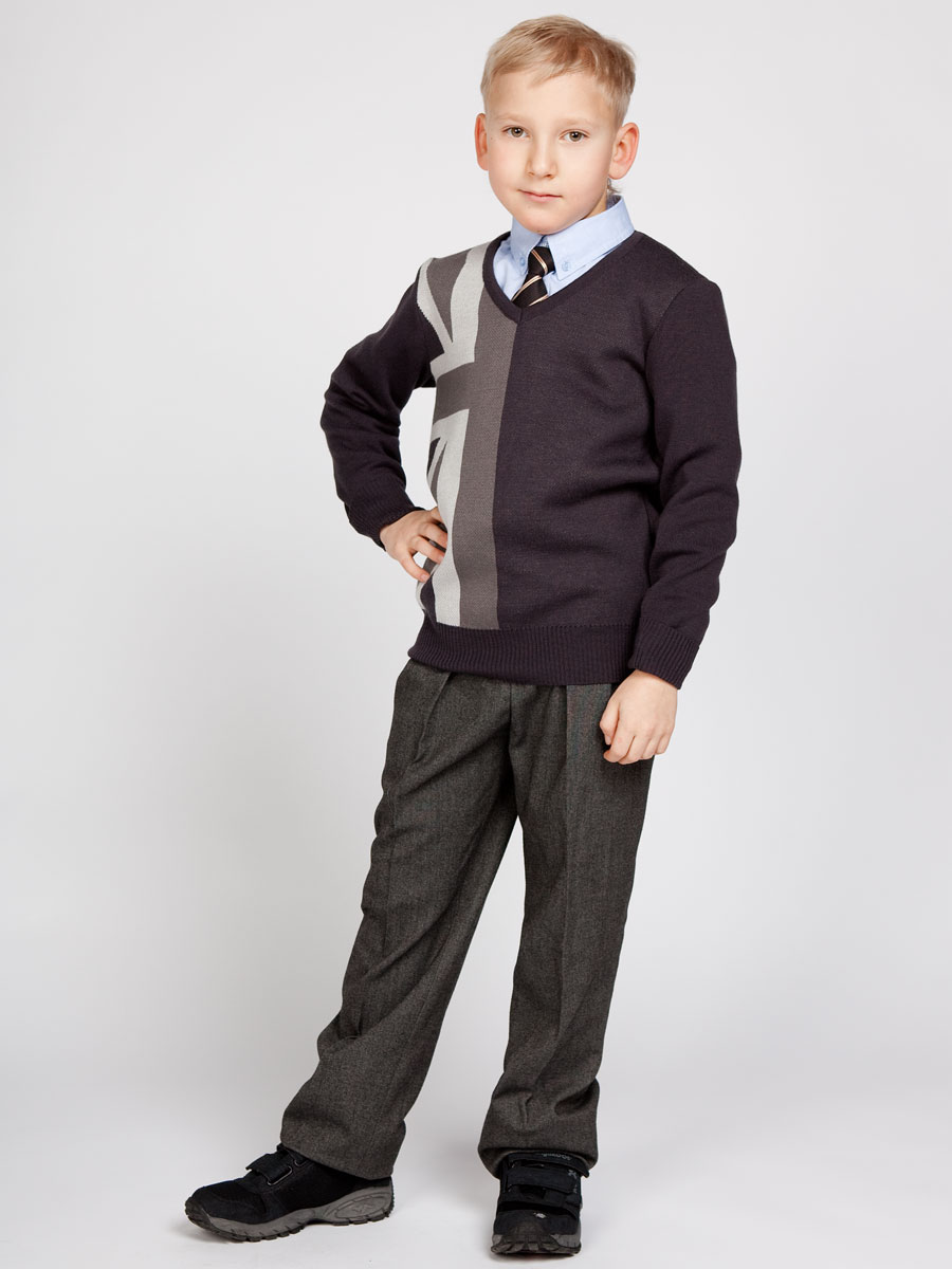 Dm10603-Пуловер с орнаментом "Британский флаг"-вязаный трикотаж-(80LVL)-серый-34(140) 2 599.00 руб. Шерсть 50%, нитрон 50%