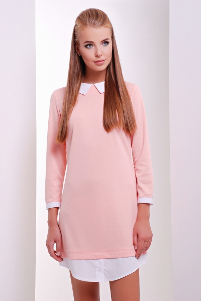 Платье с воротничком, сзади на потайной молнии, что позволит легко одеть или снять данную модель не испачкав белый котоновый воротничок. Снизу изделия пуговица обманка.