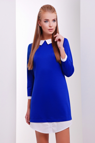 Платье с воротничком, сзади на потайной молнии, что позволит легко одеть или снять данную модель не испачкав белый котоновый воротничок. Снизу изделия пуговица обманка.