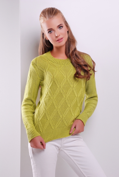 Стильный женский свитер, выполнен из комфортного материала приятного на ощупь. Фигурный вырез горловины, фактурная вязка на груди и рукавах.