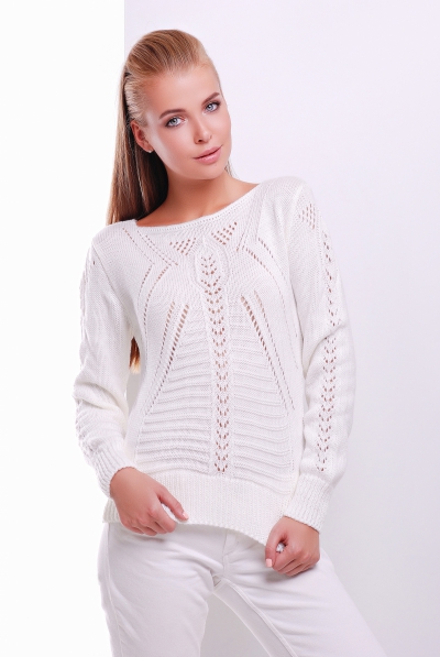 Однотонный женский свитер, выполнен из комфортного материала приятного на ощупь. Красивые элементы вязки придают изящность обладательнице этого свитера.