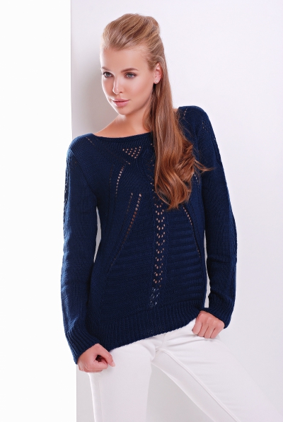 Однотонный женский свитер, выполнен из комфортного материала приятного на ощупь. Красивые элементы вязки придают изящность обладательнице этого свитера.