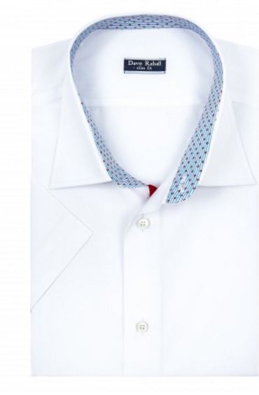 Сорочка мужская выполнена из тканей с высоким содержанием хлопка, с финишной обработкой <<еasy care>>. Модель приталенного силуэта SF застежкой на пуговицы, с узким классическим воротником и коротким рукавом. Внутренняя часть стойки воротника - из отделочной принтованной ткани. Спереди внутренняя планка декорирована тесьмой контрастного красного цвета.