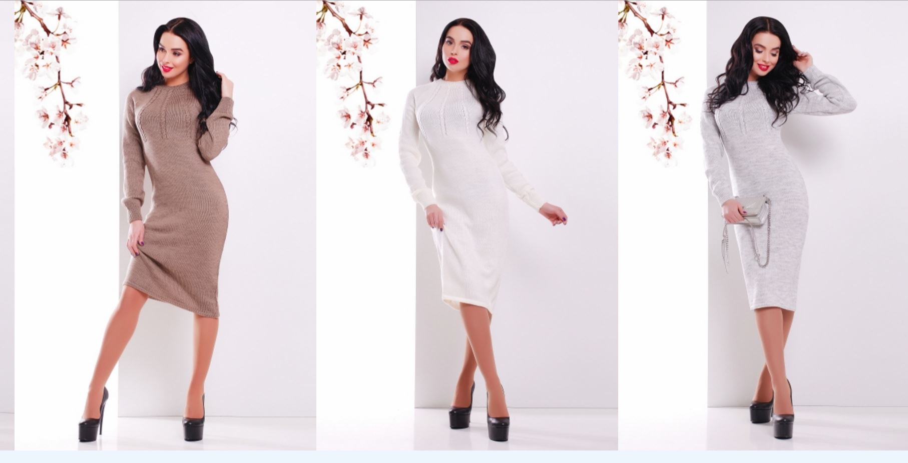 Вязаное платье выполнено из мягкой и приятной к телу пряжи, которая не колется. Спереди и сзади а также на рукавах платье декорировано узором в виде колоска. Встречайте весну модными!