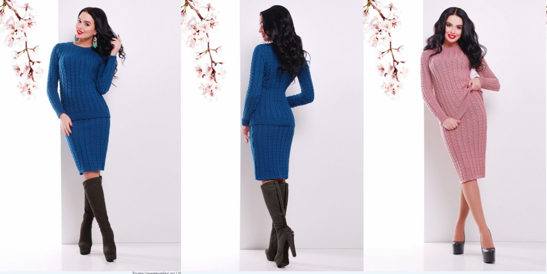 В комплект входят джемпер и юбка. Если вы хотите быть на высоте даже в повседневный день, то для таких целей подойдет этот костюм, который в свою очередь выполнен из мягкой и качественной пряжи. Вы будете чувствовать себя легко и непринужденно. Изделие выполнено узором "коса". Длинный рукав на джемпере завершается манжетой. Классическая юбка прилегающего силуэта хорошо сядет и не будет сковывать движений.