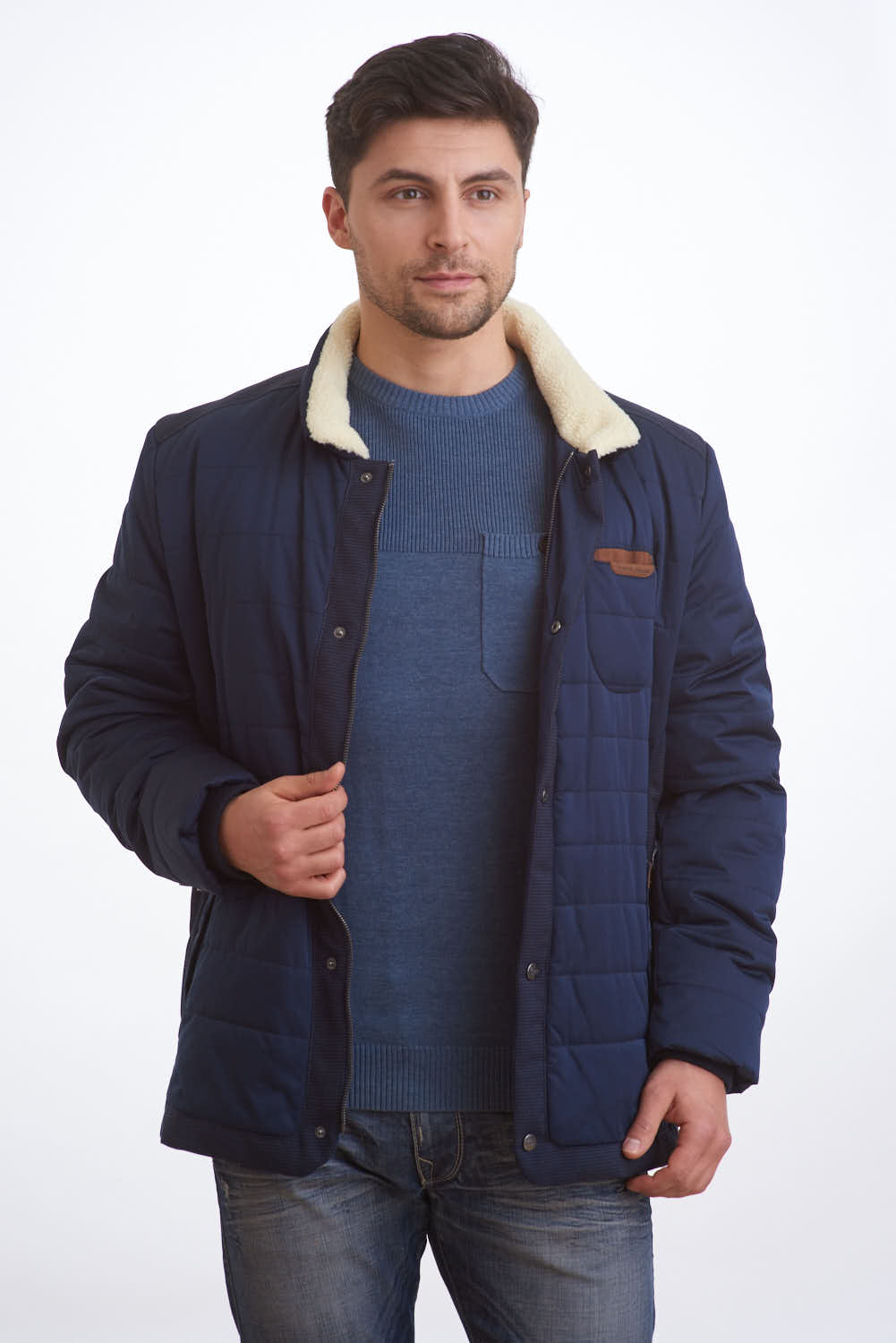 Основную застежку прикрывает отстроченная планка дополненная красивыми кнопками, которые вступают как декор и на воротнике. Все металлические детали фурнитуры украшены гравировками фирменных логотипов бренда. Длина изделия -- 71 см.