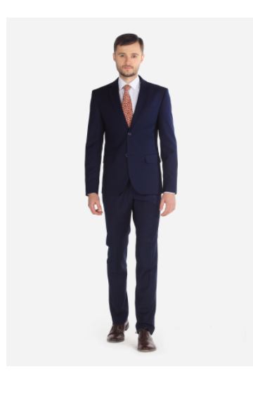 Костюм прилегающего силуэта, с центральной застежкой по борту на две пуговицы. Воротник отложной, ширина лацкана 6 см. На левом лацкане ложная петля. На полочках боковые карманы в рамку с клапаном. На левой полочке карман <<в листочку>>. Спинка с одной шлицей. На рукавах шлица закрытая, по 4 петли и пуговицы. Борт полукругом. Пиджак на подкладке, с тремя внутренними карманами, один карман застегивается на петлю и пуговицу. Брюки к костюму зауженные с притачным поясом, который застегивается на крючок с пуговицей. На передних половинках боковые наклонные карманы. На задних половинках по одной вытачке и по одному карману либо <<в рамку>>, либо <<в листочку>>..