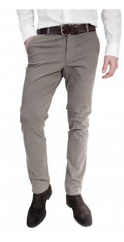 Брюки зауженного силуэта, из хлобчатобумажной ткани с эластаном от Sondrio (Италия). Сложный серый цвет (с коричневым оттенком) хорошо сочетается и дополняет любую гамму в сорочках и трикотаже.