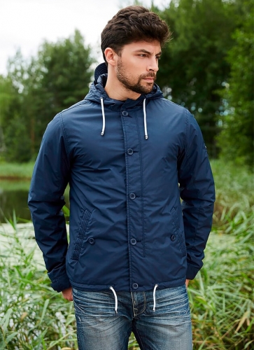Центральная молния - пластик, прикрыта двумя ветрозащитными планками. С декоративной застежкой на пуговицы. Не съемный утепленный капюшон, с кулиской по краю и кордом . Карманы с клапанами на пуговицы. По низу утяжка с кордом. Рукав с манжетом и регулировкой на кнопки.