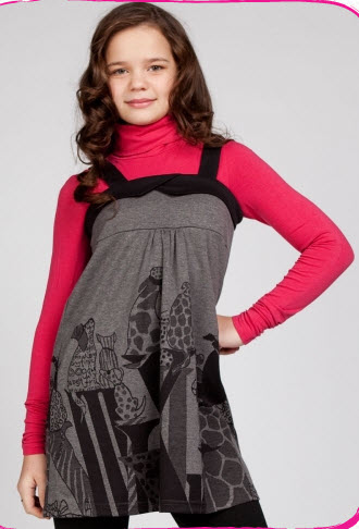 Сарафан-туника на лямках, с отрезной кокеткой, с забавной набивкой "собачки" из трикотажного плотного полотна. Эффектная отделка кокетки компаньоном добавляют этой модели шарма. Эта модель, несомненно, понравится юным модницам