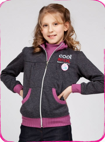 Толстовка с отрезной кокеткой,на разъемной молнии, с накладными карманами и вышивкой. . Модель выполнена из трикотажного полотна с начесом в цвете темно серый меланж с темно розовой отделкой по вороту и манжетам. Благодаря универсальному цвету эту модель будет легко комбинировать с остальным гардеробом юной модницы.