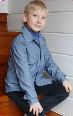 Рубашка с накладными карманами, из комбинированных тканей под джинс. Оригинальная и стильная модель очень комфортна и нравится подрастающим модникам. Легко комбинируется с жилетами, джемперами и пуловерами из коллекции