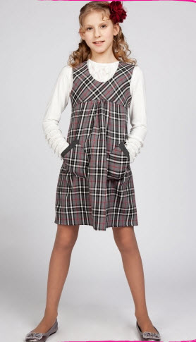 Очаровательный сарафан из костюмной ткани с отрезной кокеткой и накладными карманами. Хорошо комбинируется с водолазками и блузками из коллекции. В этом сарафане легко выглядеть индивидуально в школе, даже при наличии дресскода.