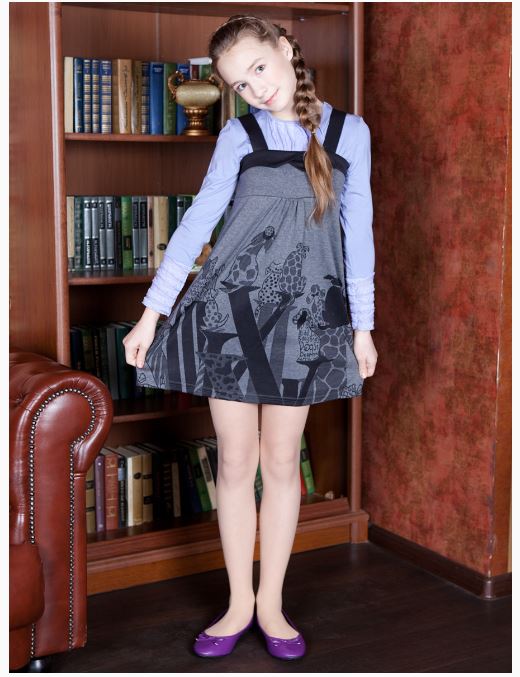 Dd30204-Сарафан туника "собачки"-трикотаж-(80LVL)-серый-34(140) 3 399,00 руб.