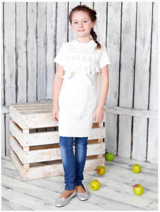 Dd101031-Платье с кружевом-вязаный трикотаж-(80LVL)-молочный-32(128) 8 630,00 руб.