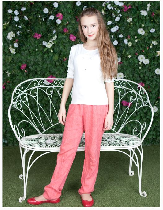 Dd30053-Брюки прямые-лен вареный-(80LVL)-коралл-34(140) 5 499,00 руб.